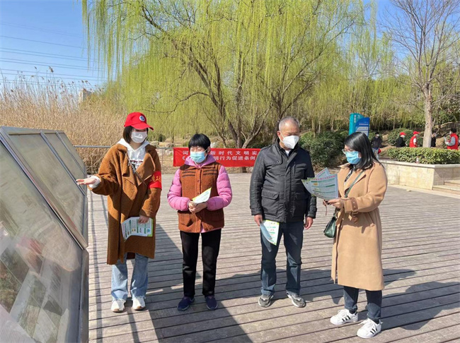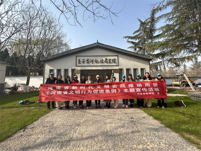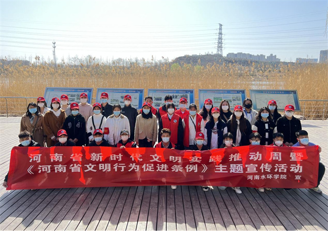 在學(xué)校水文化教育實踐基地——鄭州市賈魯河,環(huán)境工程系學(xué)生黨支部組織入黨積極分子和學(xué)生干部開展文明實踐活動,向過往市民講解、發(fā)放《河南省文明行為促進條例》宣傳頁,并開展環(huán)保志愿服務(wù)活動。