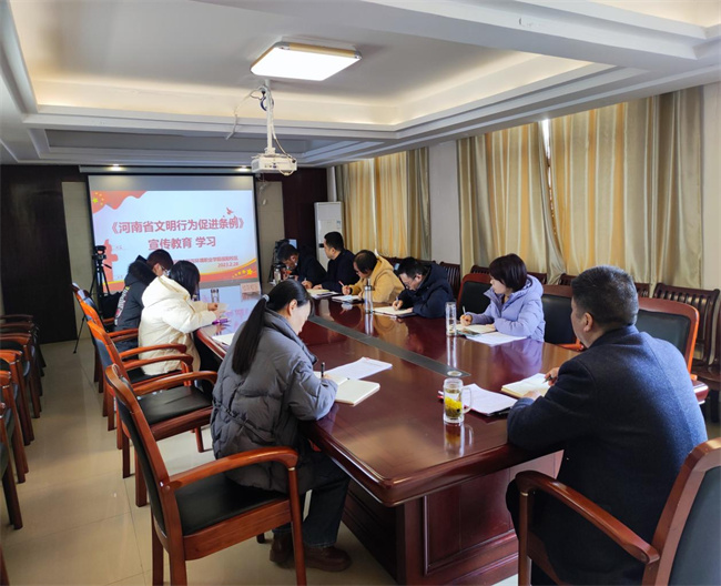 信陽校區(qū)教工黨支部組織開展《河南省文明行為促進條例》專題學(xué)習(xí),進一步引導(dǎo)干部職工樹立文明觀念,促進文明行為養(yǎng)成,發(fā)揮模范帶頭作用。