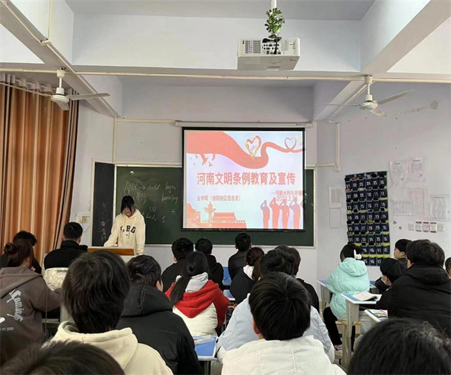 各系(校區(qū))以團課形式,組織學(xué)生觀看《河南省文明行為促進條例》專題視頻,并通過擺放主題展板等形式,營造了學(xué)習(xí)《條例》的良好氛圍。學(xué)生們紛紛表示,要自覺遵守《條例》規(guī)定,深入踐行社會主義核心價值觀,不斷提升個人文明素養(yǎng),爭做文明行為的踐行者、文明風尚的傳播者,展現(xiàn)新時代大學(xué)生的文明風采。