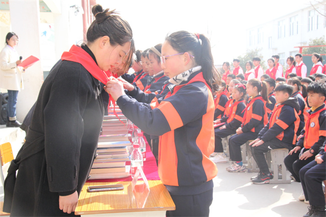 少先隊員向老師們敬獻(xiàn)紅領(lǐng)巾