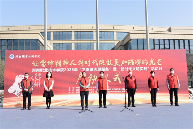 中新河南網(wǎng)3月7日電(胡艷王宜賓) 惠風(fēng)和暢,陽(yáng)光明媚。今年3月5日,是第60個(gè)“學(xué)雷鋒紀(jì)念日”。當(dāng)天上午,河南職院隆重舉行2023年“學(xué)雷鋒志愿服務(wù)”暨“新時(shí)代文明實(shí)踐”活動(dòng)月啟動(dòng)儀式。校長(zhǎng)梅樂(lè)堂出席儀式并作題為《讓雷鋒精神在新時(shí)代綻放更加璀璨的光芒》的“開學(xué)第一課”講話。龍子湖辦事處黨工委副書記、主任李鄭懿出席儀式并致辭。儀式由校黨委副書記、紀(jì)委書記田華主持。
