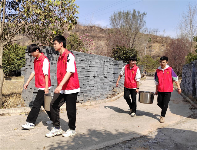 一路上,新密市莪溝村駐村老師李兆芃向大家詳細(xì)介紹村里的基本情況,同學(xué)們激情滿滿、熱情高漲。在前往植樹地點的路途中,老師和同學(xué)們裝滿了一袋又一袋垃圾,最后在李兆芃老師的指引下,同學(xué)們將垃圾統(tǒng)一放在集中點的垃圾桶里。行動不僅維護(hù)了鄉(xiāng)村環(huán)境,也讓同學(xué)們通過簡單的熱身活動體會到了在烈陽下勞動的艱辛和不易,將勞動創(chuàng)造美的道理內(nèi)化于心、外化于行。