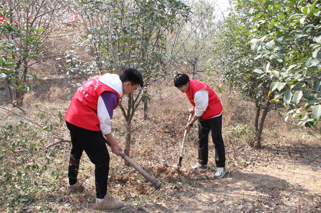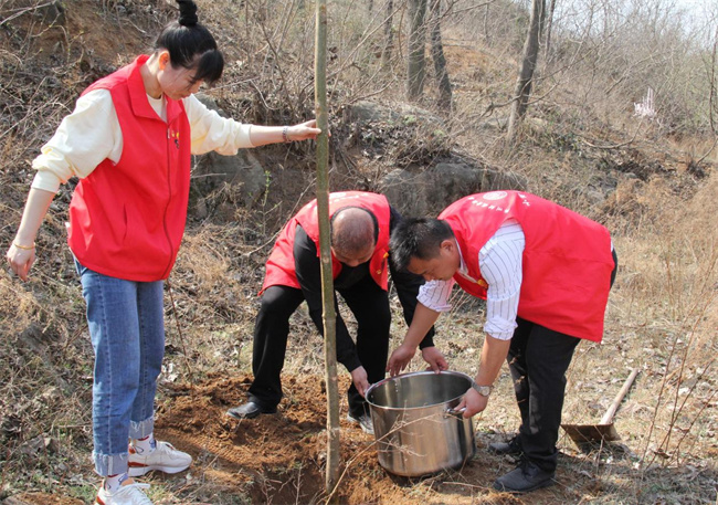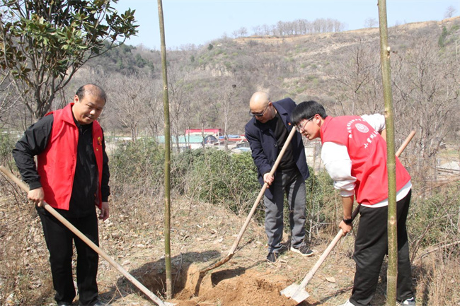 到達(dá)植樹地點后,新密市莪溝村駐村書記劉子印、商貿(mào)系黨支部副書記劉晉帶領(lǐng)老師、志愿者拿著鏟子上山挖坑,開始了植樹準(zhǔn)備工作。與此同時,村民們現(xiàn)場教其他志愿者怎樣植樹,每個志愿者都認(rèn)真聽講并積極實踐;顒蝇F(xiàn)場,大家都干勁十足,積極認(rèn)領(lǐng)“責(zé)任樹”,兩人一組,迅速投入到植樹活動中,揮鍬挖坑、扶樹填土、提水澆樹,相互協(xié)作、配合默契,每一道工序都做得一絲不茍,現(xiàn)場充滿了團(tuán)結(jié)協(xié)作、奮發(fā)向上的融洽氛圍,真正展現(xiàn)了青年學(xué)子奮發(fā)向上的精神風(fēng)貌。經(jīng)過2個多小時的揮汗奮戰(zhàn),一棵棵樹苗迎風(fēng)挺立,為早春增添新綠,鄭州財稅金融職業(yè)學(xué)院“小蜜蜂”志愿者喬冠宇說:“通過本次志愿植樹活動,豐富了我們的課外實踐活動的同時,也讓我們感受到了志愿服務(wù)的快樂,希望更多的同學(xué)們能參與生態(tài)環(huán)境志愿服務(wù)活動,以己之力踐行志愿精神、保護(hù)生態(tài)環(huán)境!”