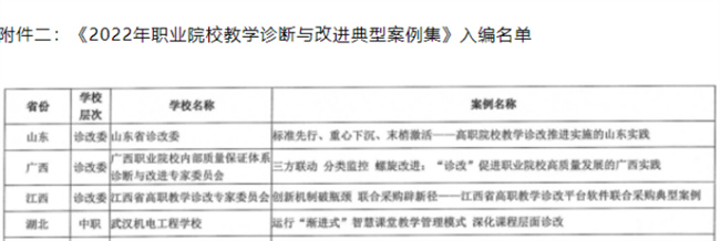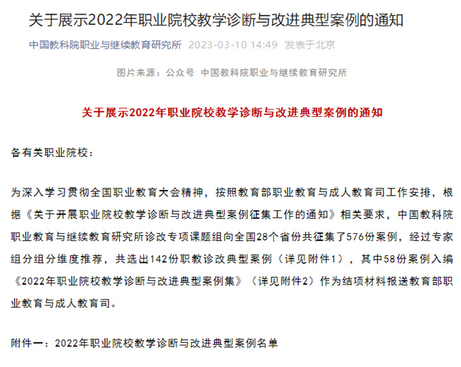 學校診改典型案例入選2022年職業(yè)院校教學診斷與改進典型案例名單