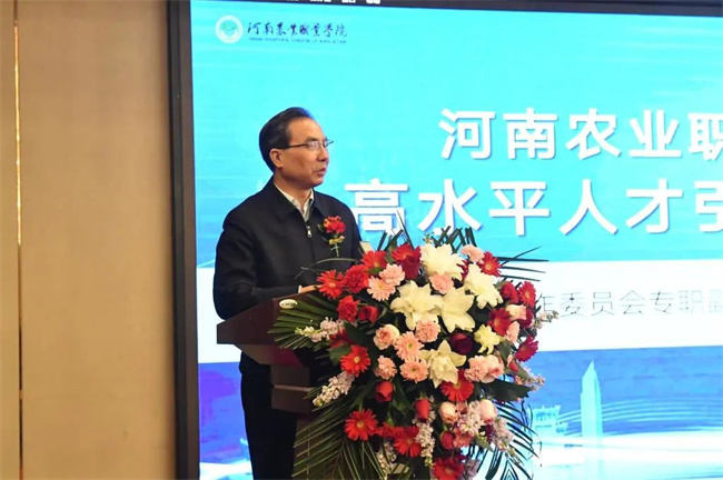 省委教育工委專(zhuān)職副書(shū)記尹洪斌指出,此次高水平人才引進(jìn)活動(dòng)不僅是河南農(nóng)業(yè)職業(yè)學(xué)院發(fā)展過(guò)程中的一件大事,也是河南教育界、高等教育職業(yè)教育界的一件盛事,不僅彰顯了河南農(nóng)業(yè)職業(yè)學(xué)院對(duì)高端人才的祈求和祈盼,體現(xiàn)了學(xué)校對(duì)建設(shè)高質(zhì)量職業(yè)教育和高等教育的勇氣和情懷,也體現(xiàn)了落實(shí)河南省創(chuàng)新驅(qū)動(dòng)、科教興省、人才強(qiáng)省戰(zhàn)略的信心和決心。尹洪斌代表省科技廳、人社廳、省委教育工委、教育廳,對(duì)河南農(nóng)業(yè)職業(yè)學(xué)院舉辦的高水平人才引進(jìn)活動(dòng)表示熱烈祝賀,對(duì)加盟河南農(nóng)業(yè)職業(yè)學(xué)院教育改革發(fā)展的各位專(zhuān)家、各位教授、各位領(lǐng)軍人才表示歡迎和祝愿。