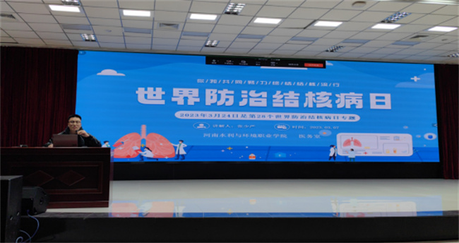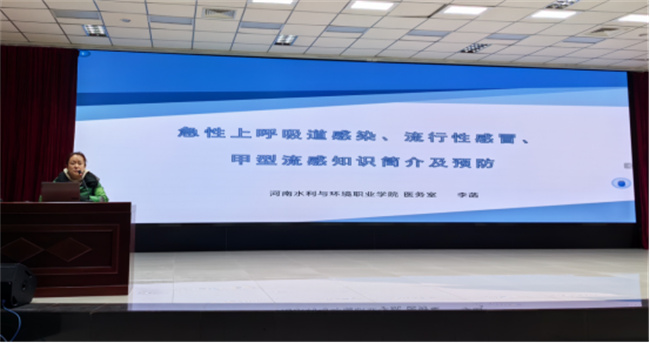 專題講座在學(xué)校航空港校區(qū)德禮講堂進(jìn)行,學(xué)校醫(yī)務(wù)室醫(yī)生張少嚴(yán)和李菡主講,航空港校區(qū)管委會(huì)主任楊慧麗主持,并以視頻形式在花園路校區(qū)、信陽(yáng)校區(qū)同時(shí)進(jìn)行。講座中,張少嚴(yán)從結(jié)核病的基本知識(shí)、傳播途徑、危害及防控措施等方面向師生講解了結(jié)核病相關(guān)知識(shí),提醒大家要增強(qiáng)自我保健意識(shí),提高防控結(jié)核病能力,樹(shù)立傳染病預(yù)防理念。李菡就近期“甲流”流行情況和春季呼吸道疾病防控做了簡(jiǎn)明概述。楊慧麗在總結(jié)講話中,倡導(dǎo)同學(xué)門(mén)要在校園內(nèi)廣泛宣傳講座內(nèi)容,成為結(jié)核病預(yù)防和杜絕傳染病在校園內(nèi)傳播的倡導(dǎo)者、行動(dòng)者、推動(dòng)者,做好自身健康的第一責(zé)任人。整場(chǎng)講座生動(dòng)精煉、簡(jiǎn)明易懂,有利于師生掌握呼吸系統(tǒng)疾病防治知識(shí)和技能。