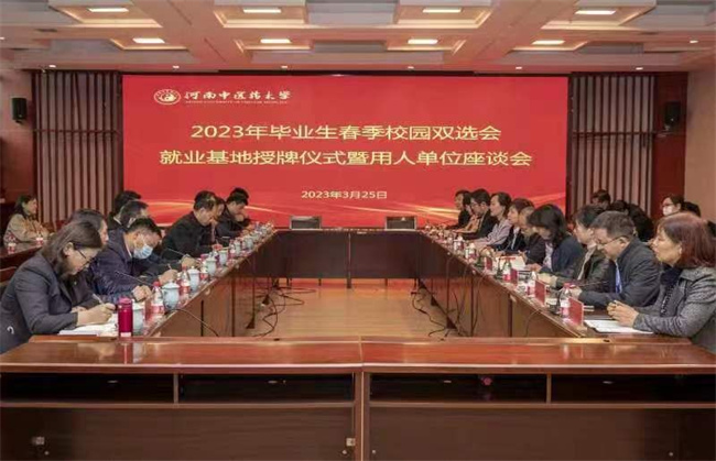 上午10:00,在圖書(shū)館第二報(bào)告廳,校領(lǐng)導(dǎo),招生就業(yè)處、教務(wù)處、學(xué)工部、研工部及各學(xué)院、書(shū)院負(fù)責(zé)人與來(lái)自省內(nèi)外的上海中醫(yī)藥大學(xué)附屬龍華醫(yī)院等10家用人單位圍繞用人單位需求、人才培養(yǎng)、如何提高畢業(yè)生就業(yè)競(jìng)爭(zhēng)力等內(nèi)容進(jìn)行了座談。會(huì)上,李小芳對(duì)各用人單位代表的到訪表示熱烈歡迎,她詳細(xì)介紹了學(xué)校發(fā)展情況、2023屆畢業(yè)生情況、學(xué)校在就業(yè)方面所做的工作等,對(duì)各用人單位對(duì)學(xué)校畢業(yè)生的就業(yè)支持給予了充分肯定,并就人才需求、校企聯(lián)合培養(yǎng)模式和提高畢業(yè)生競(jìng)爭(zhēng)力等問(wèn)題與用人單位代表充分交換了意見(jiàn)。與會(huì)代表各抒己見(jiàn),并對(duì)學(xué)校推動(dòng)中醫(yī)藥事業(yè)發(fā)展所做出的貢獻(xiàn)表示了感謝。隨后,校領(lǐng)導(dǎo)分別與用人單位參會(huì)代表簽訂畢業(yè)生就業(yè)基地協(xié)議書(shū),并進(jìn)行了就業(yè)基地授牌儀式。
