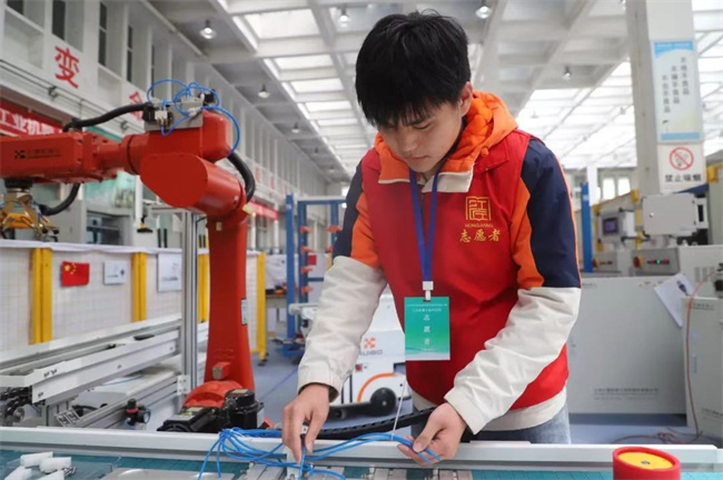 “把職業(yè)技能和志愿服務(wù)結(jié)合起來,讓時尚科技飛到尋常百姓家,這也是‘紅小匠’志愿者學(xué)以致用的看家本領(lǐng)。”智能工程學(xué)院黨總支副書記劉春鵬說,我們每年都會組織開展技能志愿服務(wù)活動,為少年兒童埋下“科技夢”的種子。今年3月5日,“紅小匠”志愿服務(wù)隊身著紅馬甲,手提機器人,再次走進新鄭市龍湖鎮(zhèn)東張寨文化活動廣場,上演了一場別開生面的“機器人”表演秀。在活動現(xiàn)場,隨著音樂響起,志愿者操控機器人做出多種高難度動作,一會兒翩翩起舞,一會兒亭亭玉立,引來不少小朋友凝神注視。“紅小匠”志愿者用知識和技能為小朋友們送去了科技與歡樂。
