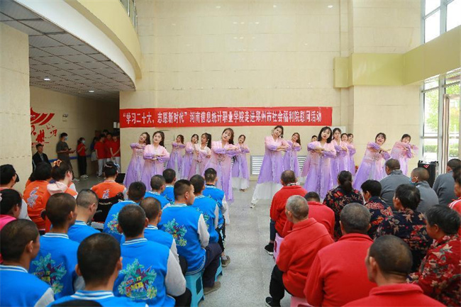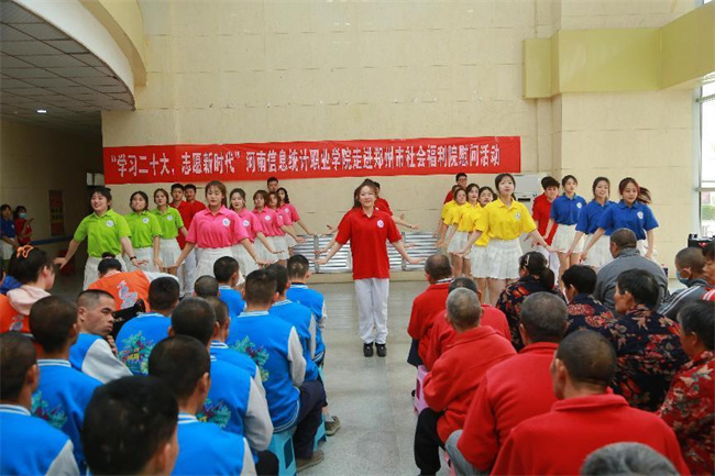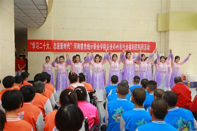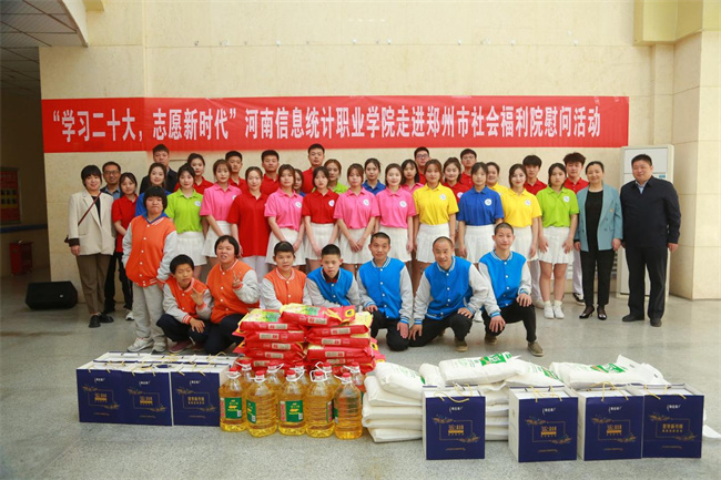 中新河南網(wǎng)4月13日電 4月11日,河南信息統(tǒng)計(jì)職業(yè)學(xué)院志愿服務(wù)隊(duì)30余人,前往鄭州市社會福利院舉行“學(xué)習(xí)二十大 志愿新時代”——河南信息統(tǒng)計(jì)職業(yè)學(xué)院走進(jìn)鄭州市社會福利院慰問活動,看望、慰問福利院的孤寡老人和兒童,進(jìn)行慰問演出,并送去大米、食用油、面粉、牛奶等慰問品。學(xué)校宣傳統(tǒng)戰(zhàn)部、校團(tuán)委負(fù)責(zé)人和鄭州市社會福利院黨總支書記張喜成、院長張春萍出席活動。