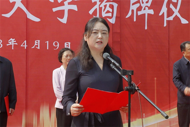 史曉天代表平頂山市人民政府向開放大學(xué)的成立表示祝賀。她指出,平頂山廣播電視大學(xué)建校40多年來,牢記“為黨育人、為國育才”使命,緊貼社會(huì)需求,勇?lián)鷷r(shí)代重任,培養(yǎng)了十萬多名實(shí)用型、技能型人才,為我市經(jīng)濟(jì)社會(huì)發(fā)展作出了積極貢獻(xiàn)。希望學(xué)校以此次更名為新的起點(diǎn),積極適應(yīng)數(shù)字化、智能化、終身化、融合化教育發(fā)展趨勢(shì),緊緊圍繞開放大學(xué)綜合改革要求,堅(jiān)持內(nèi)涵特色發(fā)展,不斷提高辦學(xué)質(zhì)量和水平,為推動(dòng)我市經(jīng)濟(jì)社會(huì)發(fā)展作出新的更大貢獻(xiàn)。希望河南開放大學(xué)對(duì)我市開放教育工作給予更多的支持和指導(dǎo)。平頂山市政府將一如既往地關(guān)心支持開放大學(xué)的建設(shè)與發(fā)展,推動(dòng)學(xué)校建設(shè)成為具有鮮明特色、國內(nèi)一流的開放大學(xué)。