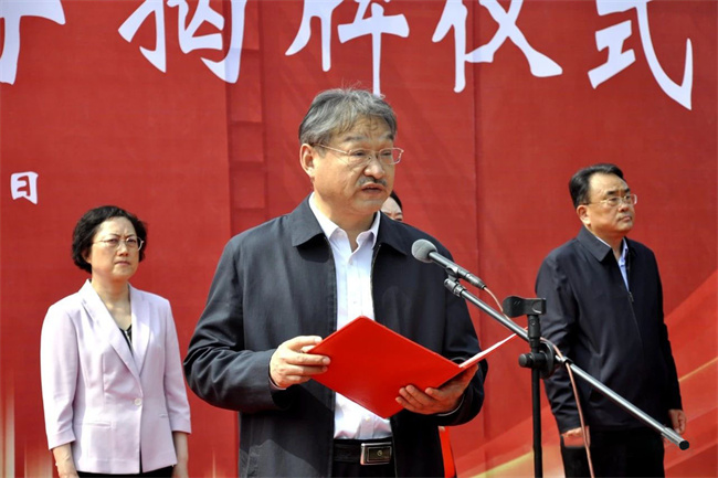 邱紅標(biāo)致辭,向蒞臨揭牌儀式的領(lǐng)導(dǎo)和嘉賓表示歡迎。他表示,平頂山開放大學(xué)掛牌成立,開啟了我市開放育人的新篇章。學(xué)院將堅(jiān)持與開放大學(xué)各項(xiàng)工作共同部署推進(jìn),堅(jiān)持職業(yè)教育與開放教育相互融合發(fā)展,不斷加強(qiáng)黨的全面領(lǐng)導(dǎo),深入貫徹黨的教育方針,堅(jiān)守社會(huì)主義辦學(xué)方向,牢記為黨育人、為國育才的神圣使命,全面落實(shí)立德樹人根本任務(wù)。平頂山開放大學(xué)將深化教學(xué)課程改革,深化人才培養(yǎng)模式,不斷提高辦學(xué)質(zhì)量;緊密結(jié)合地域產(chǎn)業(yè),不斷拓展社會(huì)服務(wù)功能,扎實(shí)辦好人民滿意的教育,為促進(jìn)我市形成“人人皆學(xué)、處處能學(xué)、時(shí)時(shí)可學(xué)”的學(xué)習(xí)型社會(huì)做出應(yīng)有貢獻(xiàn)。