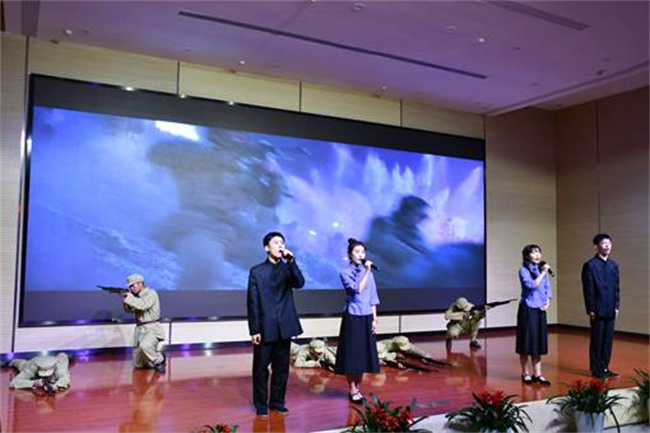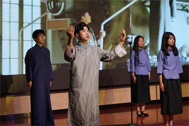 同學(xué)們?cè)谡b讀中回望歷史感悟紅色力量,使學(xué)校廣大青年學(xué)子對(duì)經(jīng)典浸潤(rùn)、文化育人有了更深刻的認(rèn)識(shí)和感悟。節(jié)目最后,歌曲《追尋》將活動(dòng)氛圍推向頂點(diǎn)。