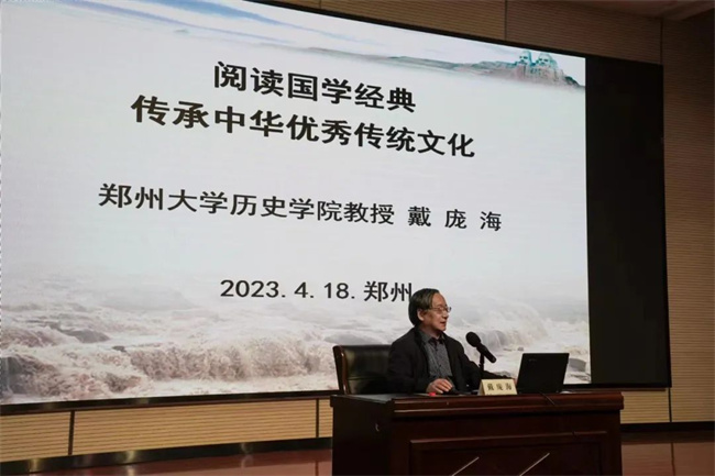 教師代表、全國職業(yè)院校教師技能大賽全國一等獎獲得者馬雁和學生禹翔耀向全校師生發(fā)出閱讀倡議。學校信通學院展示了情景誦讀《覺醒年代——請黨放心強國有我》,師生們激情澎湃的朗誦,贏得了現(xiàn)場觀眾們的陣陣掌聲。最后,鄭州大學歷史學院國學系主任戴龐海教授作《閱讀國學經(jīng)典傳承中華優(yōu)秀傳統(tǒng)文化》主題講座。