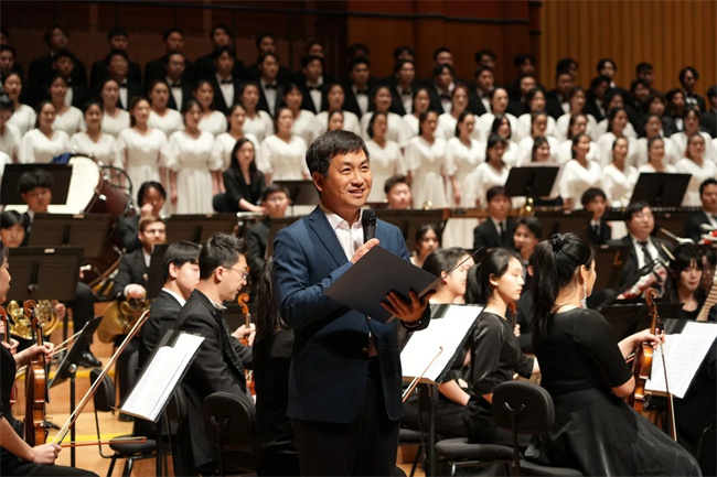 音樂(lè)會(huì)開(kāi)場(chǎng),河南機(jī)電職業(yè)學(xué)院黨委宣傳統(tǒng)戰(zhàn)部部長(zhǎng)、音樂(lè)學(xué)院黨總支書(shū)記李想在致辭中介紹,知行交響樂(lè)團(tuán)自2021年成立以來(lái),把舞臺(tái)當(dāng)教室、把教室當(dāng)舞臺(tái),以演出推動(dòng)教學(xué),在校內(nèi)外舉辦近百場(chǎng)演出,受眾超過(guò)五萬(wàn)人,極大豐富了師生校園文化生活。李想對(duì)關(guān)心支持河南機(jī)電職業(yè)學(xué)院音樂(lè)學(xué)院的各級(jí)領(lǐng)導(dǎo)和社會(huì)各界人士表示衷心感謝和崇高的敬意。