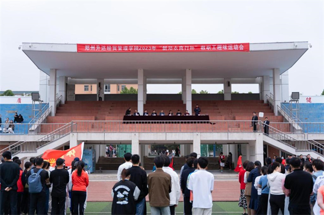 中新河南網(wǎng)4月26日電(王凱 王炳愷 王鵬豪) 4月20日下午,鄭州升達(dá)經(jīng)貿(mào)管理學(xué)院“新鄭農(nóng)商行杯”教職工趣味運(yùn)動(dòng)會(huì)勝利閉幕。校黨委書記雷霆、校長(zhǎng)張欣、副校長(zhǎng)兼工會(huì)主席張金安、副校長(zhǎng)兼總務(wù)長(zhǎng)張其武等領(lǐng)導(dǎo)和特邀嘉賓新鄭農(nóng)商銀行孟莊支行行長(zhǎng)陳冠華、新鄭農(nóng)商銀行龍湖支行行長(zhǎng)行長(zhǎng)李紅昌、各單位教職工近千人參加了閉幕式。