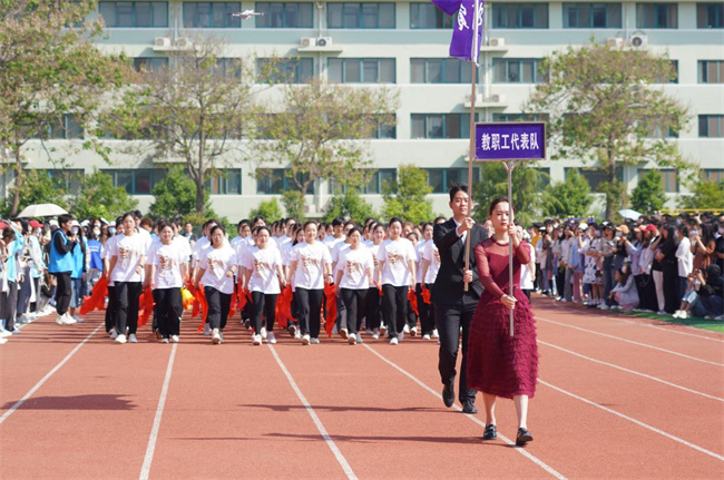 伴隨著雄壯激昂的《運(yùn)動(dòng)員進(jìn)行曲》,在國旗護(hù)衛(wèi)隊(duì)的引領(lǐng)下,裁判員、教職工代表隊(duì)、各學(xué)院方陣氣宇軒昂,容光煥發(fā),踏著整齊劃一的步伐,向主席臺(tái)領(lǐng)導(dǎo)和現(xiàn)場(chǎng)觀眾展示昂揚(yáng)向上的精神風(fēng)貌。