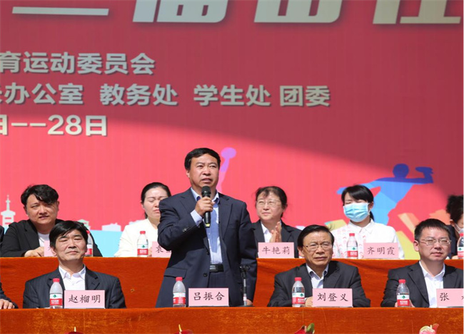 校長呂振合宣布運(yùn)動(dòng)會(huì)正式開幕,現(xiàn)場(chǎng)響起雷鳴般的掌聲。