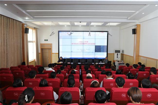 活動(dòng)中,中國(guó)水利書(shū)法家協(xié)會(huì)副主席李憲章以“管徑窺幽——書(shū)法藝術(shù)欣賞與臨摹”為題,從自身學(xué)習(xí)書(shū)法的經(jīng)歷、書(shū)法工具的選擇、書(shū)法臨摹與創(chuàng)作等方面為書(shū)法愛(ài)好者介紹了學(xué)習(xí)書(shū)法的路徑和方法,現(xiàn)場(chǎng)展示了自己創(chuàng)作的條幅、冊(cè)頁(yè)、印屏、手卷等精美書(shū)法作品,并在互動(dòng)環(huán)節(jié)向同學(xué)們贈(zèng)送了書(shū)法小品,深受同學(xué)們喜愛(ài)。大家表示這次講座激發(fā)了自己學(xué)書(shū)法、練書(shū)法的興趣和熱情,為學(xué)習(xí)書(shū)法提供了借鑒,受益匪淺。
