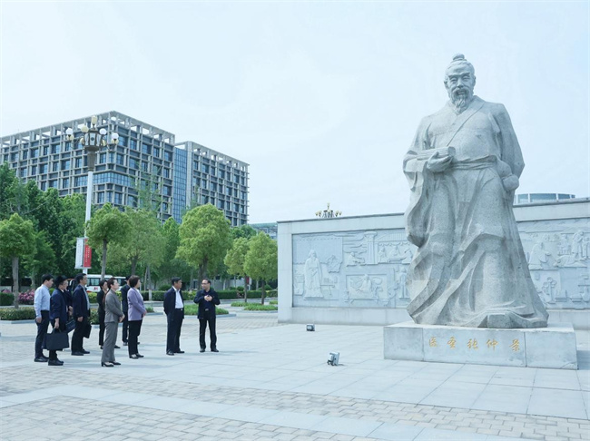 與會(huì)領(lǐng)導(dǎo)、專家在仲景廣場(chǎng)了解醫(yī)圣張仲景生平事跡
