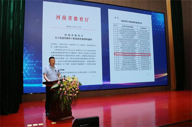 學校黨委書記花明致歡迎辭,代表學校向與會人員表示熱烈的歡迎和衷心的感謝,簡要介紹了學校的發(fā)展歷程和辦學情況。他表示,省教育廳確定該校作為集團牽頭建設(shè)單位,既是對學校的信任和支持,也是全校師生員工的期盼和夢想,學校將以集團成立為契機,銳意進取,開拓創(chuàng)新,充分發(fā)揮集團的橋梁紐帶作用,與集團成員單位加強協(xié)作、共同努力,進一步深化校校合作、校院合作、校企合作,全力打造具有鮮明特色的職教集團品牌,為河南職業(yè)教育改革發(fā)展作出新的更大貢獻。