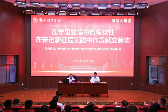 讀書(shū)班還邀請(qǐng)鄭州大學(xué)馬克思主義學(xué)院博士生導(dǎo)師于向東教授作專題輔導(dǎo)報(bào)告,融會(huì)貫通地講解習(xí)近平總書(shū)記關(guān)于主題教育的重要講話精神和毛澤東、鄧小平等歷代領(lǐng)導(dǎo)人關(guān)于增強(qiáng)黨性的論述,從如何理解黨性的概念內(nèi)涵、不斷增強(qiáng)黨性我們黨從弱到強(qiáng)走向勝利輝煌、新時(shí)代習(xí)近平總書(shū)記對(duì)增強(qiáng)黨性提出新要求、奮進(jìn)新征程建功新時(shí)代必須增強(qiáng)黨性等四個(gè)方面進(jìn)行系統(tǒng)的宣講和深入的闡釋。