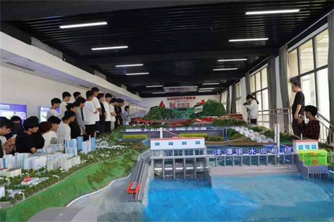 在該校海綿校園水利技術(shù)推廣示范園,師生一起深入了解了海綿校園的建設(shè)意義、設(shè)計(jì)理念、主要內(nèi)容、功能分區(qū)以及在“滲、滯、蓄、凈、用、排”等方面發(fā)揮的作用。在數(shù)字流域與水利樞紐動態(tài)仿真實(shí)訓(xùn)中心,大家一起學(xué)習(xí)了二灘、小浪底、三峽等水利工程的運(yùn)行原理,現(xiàn)場觀看了流域防洪調(diào)度、供水工程優(yōu)化調(diào)度、智慧節(jié)水灌溉等動態(tài)演示。