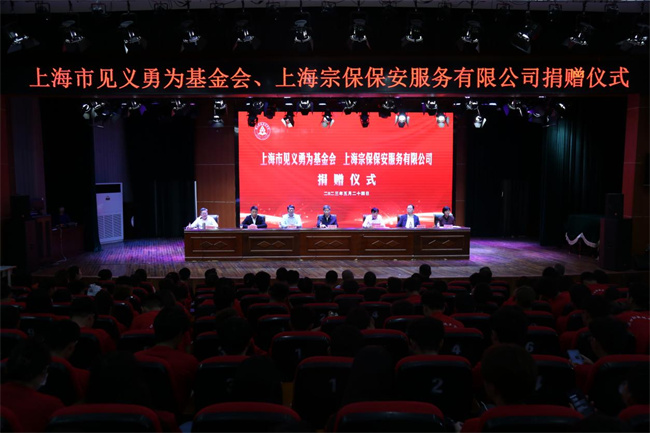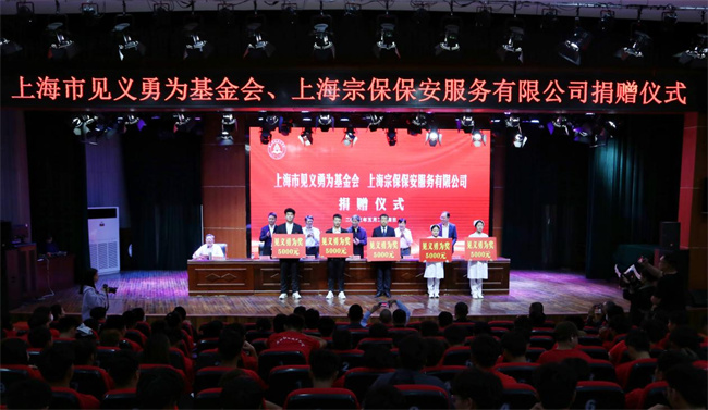 中新河南網(wǎng)5月26日電(石巖) 5月24日下午,上海市見義勇為基金會及上海宗保保安服務(wù)有限公司捐贈儀式在周口職業(yè)技術(shù)學院開元校區(qū)勵德廳舉行。