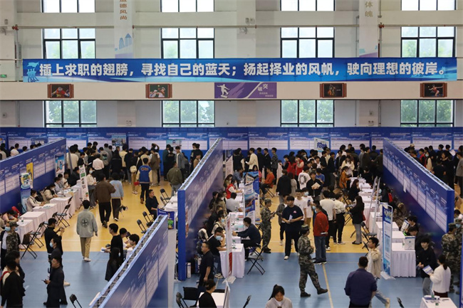 雙選會(huì)現(xiàn)場(chǎng)人頭攢動(dòng)、氣氛熱烈。一大早,用人單位和求職學(xué)生在志愿者的指引下乘坐校園擺渡車有序入場(chǎng)。用人單位通過(guò)招聘海報(bào)、宣傳單頁(yè)和專人接待、職業(yè)介紹等吸引求職學(xué)生的關(guān)注。求職的同學(xué)們也早早帶著簡(jiǎn)歷來(lái)到現(xiàn)場(chǎng),認(rèn)真比較、選擇心儀的崗位。雙方就企業(yè)情況、用人要求、薪資待遇及發(fā)展規(guī)劃等熱情攀談,根據(jù)雙方意向進(jìn)行深度面試。據(jù)統(tǒng)計(jì)數(shù)據(jù)顯示,當(dāng)天求職學(xué)生共投遞簡(jiǎn)歷近50000份,4300多名退役大學(xué)生士兵、畢業(yè)生與用人單位達(dá)成了就業(yè)意向。