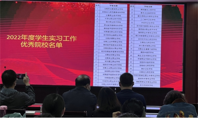 會(huì)上,省教育廳職成教處副處長(zhǎng)王凱作重要講話,內(nèi)容涉及分析各職業(yè)學(xué)校實(shí)習(xí)管理工作開(kāi)展情況、職業(yè)院校實(shí)習(xí)管理以案促改工作情況總結(jié),并安排2023-2024年河南省職業(yè)院校學(xué)生實(shí)習(xí)有關(guān)工作。省教育廳職成教處蔡崇宣讀了2022年度河南省職業(yè)院校學(xué)生實(shí)習(xí)工作優(yōu)秀院校名單,該院榮獲“2022年度河南省職業(yè)院校學(xué)生實(shí)習(xí)工作優(yōu)秀院校”榮譽(yù)稱(chēng)號(hào)。