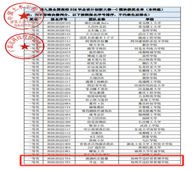鄭州升達學院在第九屆全國BIM畢業(yè)設(shè)計中獲佳績
