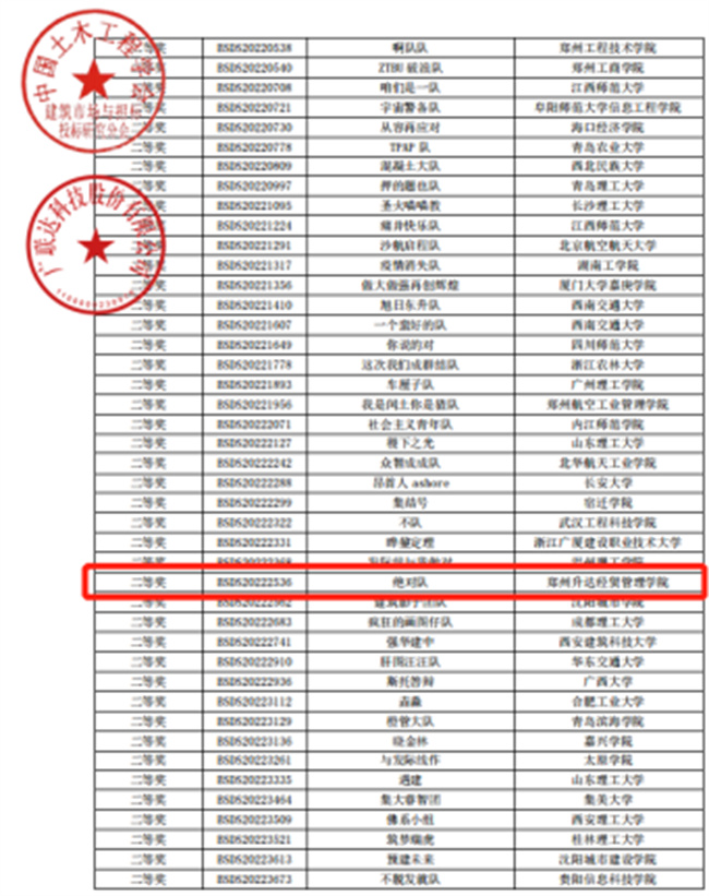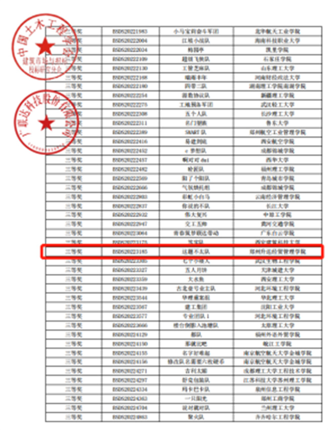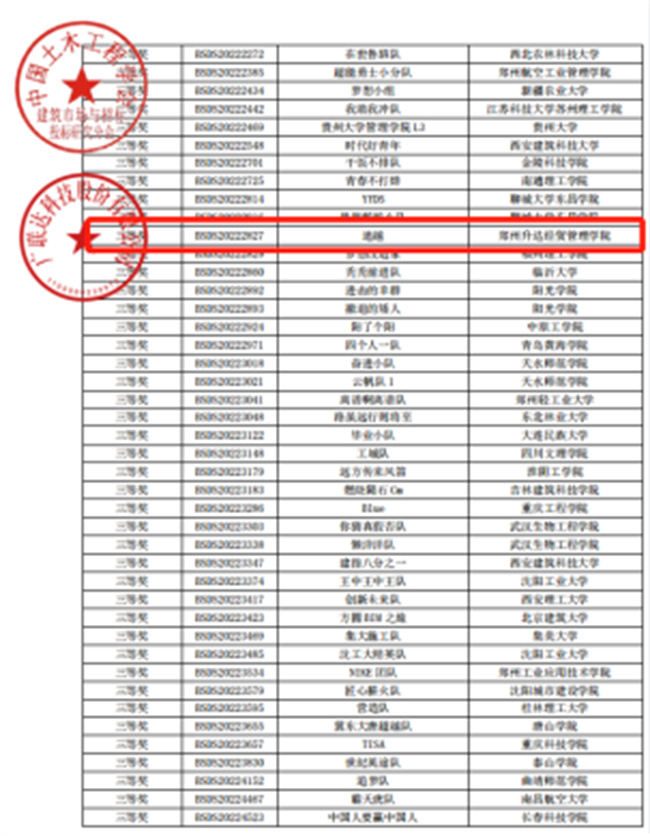 中新河南網(wǎng)5月31日電(陳宇瑞) 鄭州升達經(jīng)貿(mào)管理學院建筑工程學院從去年十月開始,組織了四個本科專業(yè)的學生共9支參賽隊伍參加了“第九屆全國高校BIM畢業(yè)設(shè)計創(chuàng)新大賽”其中的五個模塊的比賽。作為全國規(guī)模最大、涵蓋專業(yè)最多的高校建筑專業(yè)賽事之一,已連續(xù)三年入選《普通高校大學生競賽排行榜》,成為全國大學生建筑類專業(yè)比賽BIM方向唯一入選賽事。大賽自2022年10月啟動以來,共計報名580余家院校,5600余支團隊,參與師生30000余人。在如此競爭激烈的情況下,建筑工程學院獲得以下成績:工程造價專業(yè)韓晶晶、陳宇瑞老師帶領(lǐng)的C模塊兩支隊伍均獲一等獎,繼續(xù)參加下一階段的特等獎的比賽。建筑學專業(yè)房碩、馬璟煒老師帶隊的H模塊獲得二等獎、三等獎各一項。土木工程專業(yè)郝偉杰、李永濤老師帶隊的D模塊獲三等獎一項。