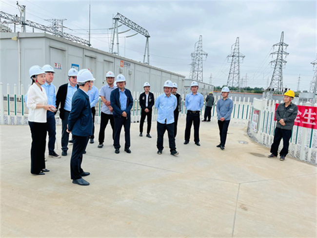 在項目工程人員帶領(lǐng)下,校長楊建華一行實地走訪了唐河光伏電站140兆瓦變電站和占地近三千畝的光伏板區(qū),對該光伏電站的設(shè)計、運(yùn)維情況,工人值守工作內(nèi)容、需要技能等情況進(jìn)行了詳細(xì)的詢問和了解。通過參觀交流,了解了光伏組件的相關(guān)參數(shù)、發(fā)電效率、發(fā)電影響因素、維護(hù)方式、經(jīng)濟(jì)效益和社會效益等內(nèi)容。
