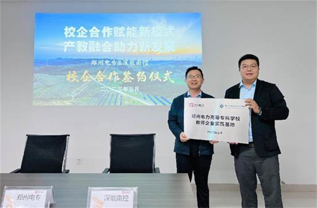 雙方在學(xué)生培養(yǎng)、就業(yè)推薦、職工培訓(xùn)、科研項目、技術(shù)攻關(guān)、專業(yè)建設(shè)等方面的合作進(jìn)行了深入的探討,并對如何推進(jìn)產(chǎn)學(xué)研深度融合、助力畢業(yè)生高質(zhì)量就業(yè)方面進(jìn)一步深化合作達(dá)成了共識,雙方簽訂了校企合作協(xié)議,并確定將深能南京能源控股有限公司唐河光伏電站定為學(xué)校教師企業(yè)實踐基地和學(xué)生實習(xí)基地。隨后,能源學(xué)院教工黨支部與深能南控河南黨支部簽訂了支部黨建聯(lián)創(chuàng)協(xié)議。