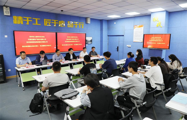 鄭州電力高等?茖W校副校長楊小琨、無錫信捷電氣股份有限公司公共及教育部事業(yè)部部長王正堂進行“1+X”可編程控制器系統(tǒng)應用編程考核站點的簽約,并完成考核站點的授牌。