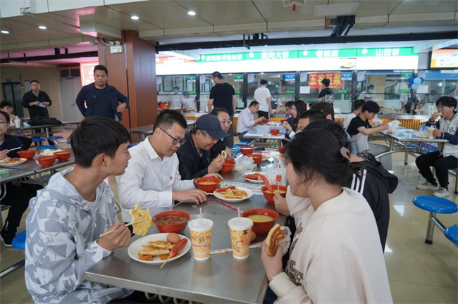 儀式結(jié)束后,胡昊、周志琦等與同學(xué)們共進早餐,并與大家親切交談。
