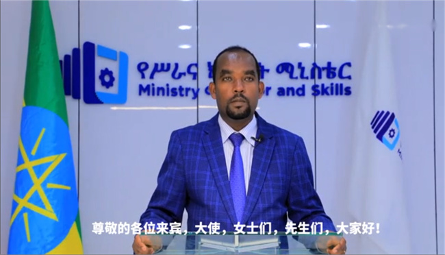 埃塞俄比亞勞動與技能部國務(wù)部長特沙萊·貝雷查·亞德薩通過視頻方式致辭。他談到:近年來,埃中全面合作伙伴關(guān)系迅速發(fā)展并取得了豐碩成果,尤其是在教育和文化領(lǐng)域。我們今天相聚在此,也是埃中雙方以往交流的延續(xù),“中文+職業(yè)技能”項目,將為埃賽俄比亞勞動力市場培養(yǎng)高素質(zhì)技能人才,大大提升埃塞俄比亞畢業(yè)生的就業(yè)力,為埃塞俄比亞技術(shù)職業(yè)教育培訓(xùn)添磚加瓦。
