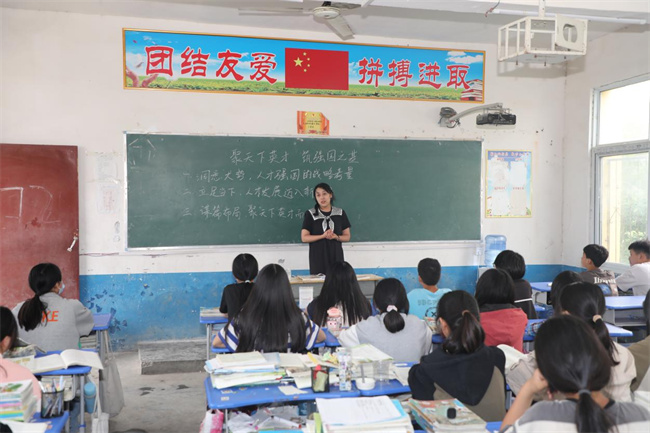 在東和店鎮(zhèn)初級(jí)中學(xué),藝術(shù)教學(xué)部主任陳錦杰講授了“高雅音樂進(jìn)課堂——古典音樂欣賞”藝術(shù)課,帶領(lǐng)同學(xué)們一起欣賞古典音樂,走進(jìn)音樂藝術(shù),提升審美情趣。思想政治理論教學(xué)部教師劉妍以《聚天下英才 筑強(qiáng)國(guó)之基》為題進(jìn)行了理論宣講,為同學(xué)們講解了國(guó)家加快建設(shè)教育強(qiáng)國(guó)、科技強(qiáng)國(guó)、人才強(qiáng)國(guó)有關(guān)內(nèi)容,鼓勵(lì)同學(xué)們要懷抱夢(mèng)想,立志成才。