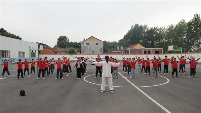 在東和店鎮(zhèn)第一小學(xué),文藝支教工作隊(duì)舉行了“關(guān)愛少年 守望成長(zhǎng)”文體用品捐贈(zèng)活動(dòng),向東和店鎮(zhèn)第一小學(xué)捐贈(zèng)了一批籃球、足球、排球、羽毛球、乒乓球、毽球等學(xué)生體育用品,得到了學(xué)校老師和孩子們的稱贊。體育教學(xué)部教師劉小楠進(jìn)行了民族傳統(tǒng)體育項(xiàng)目——健身氣功八段錦教學(xué)展示,并帶領(lǐng)同學(xué)們練習(xí)民族傳統(tǒng)體育項(xiàng)目,感悟蘊(yùn)含的民族傳統(tǒng)體育文化,為同學(xué)們帶來了不一樣的感受。