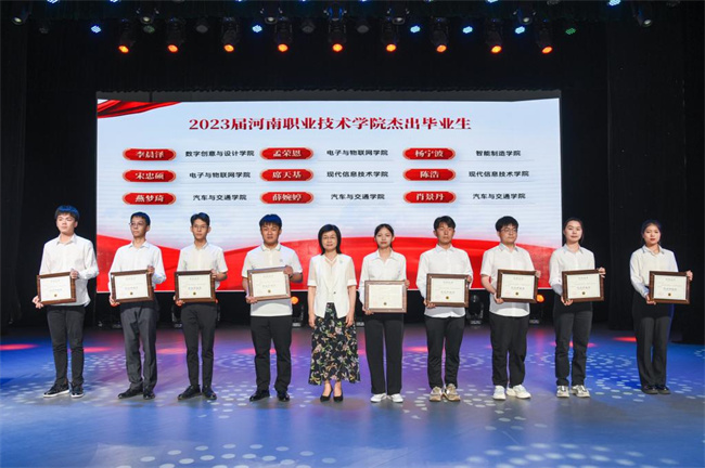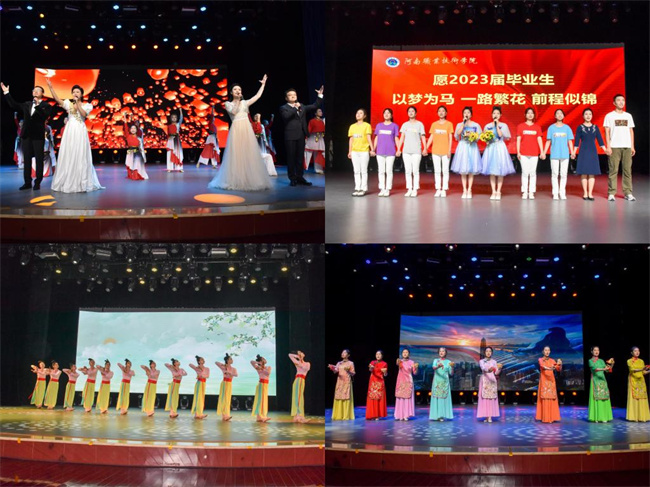隨后,與會師生一同觀看了歡送畢業(yè)生匯演。畢業(yè)歌曲聯(lián)唱《鳳凰花開的路口》和《光陰的故事》引起了全場同學(xué)的強(qiáng)烈共鳴,反映了畢業(yè)生們對校園生活的懷念和不舍;獲全國高校心理情景劇二等獎的《尋心》,講述了當(dāng)代大學(xué)生面臨的心理困惑和領(lǐng)悟成長的故事;獲河南省大學(xué)生科技文化藝術(shù)節(jié)舞蹈類一等獎的《灼灼芳華》和快板書《道路》展現(xiàn)了當(dāng)代河職學(xué)子的青春活力與時代擔(dān)當(dāng);典禮在歌伴舞《復(fù)興的力量》中緩緩落幕,與會領(lǐng)導(dǎo)、老師和畢業(yè)生代表一起合影留念。