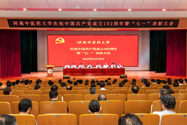 中新河南網(wǎng)6月30日電(趙會(huì)杰 郭寅虎) 2023年6月29日,河南中醫(yī)藥大學(xué)慶祝中國共產(chǎn)黨成立102周年暨“七一”表彰大會(huì)在龍子湖校區(qū)俊學(xué)樓B101報(bào)告廳舉行。河南中醫(yī)藥大學(xué)黨委書記李小芳出席會(huì)議并講話,校長(zhǎng)王耀獻(xiàn)主持會(huì)議。校領(lǐng)導(dǎo)張小平、李建生、王少玉、田力、張加民、苗明三,全體中層干部、獲“光榮在黨50年”紀(jì)念章黨員代表、黨支部書記代表、黨員代表、受表彰的先進(jìn)集體和個(gè)人代表參加會(huì)議。