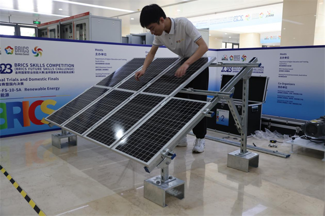 本次大賽共有來(lái)自全國(guó)23個(gè)省份37支代表隊(duì)參加決賽,競(jìng)賽主要考察可再生能源的項(xiàng)目實(shí)施、安裝調(diào)試、系統(tǒng)運(yùn)行、工程維護(hù)、故障排查等環(huán)節(jié),提高和檢驗(yàn)選手對(duì)可再生能源的行業(yè)標(biāo)準(zhǔn)及規(guī)范、安裝、常規(guī)器件等專業(yè)知識(shí)的理解及靈活應(yīng)用能力、熟練操作系統(tǒng)的能力、對(duì)疑難問(wèn)題的現(xiàn)場(chǎng)解決等綜合創(chuàng)新發(fā)展能力。參賽選手需要在3個(gè)半小時(shí)內(nèi),獨(dú)立完成光伏板和支架結(jié)構(gòu)的安裝、測(cè)量,主機(jī)柜的接線、系統(tǒng)參數(shù)設(shè)置,整體系統(tǒng)的運(yùn)行調(diào)試。比賽執(zhí)行行業(yè)標(biāo)準(zhǔn)和相關(guān)技術(shù)要求,結(jié)合行業(yè)實(shí)際,體現(xiàn)新技術(shù);強(qiáng)調(diào)質(zhì)量和精度,注重基本技能和專業(yè)化操作,注重操作過(guò)程和質(zhì)量控制,考核選手的學(xué)習(xí)能力、理解能力、實(shí)踐操作能力、職業(yè)素養(yǎng)等職業(yè)綜合素質(zhì)。