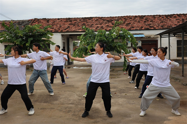 訓練有素,神采奕奕展風貌。“三下鄉(xiāng)”社會實踐不僅是一個為民辛勤奉獻的過程,也是青年學生自我成長的過程。每天早上7點,服務團志愿者們以一套整齊劃一的八段錦喚醒頭腦;中午12點,老師和同學們一起盛飯,師生一心,勞動筑基;晚上8點,志愿者們跳團舞來放松身體,強壯體魄;晚上8點半,老師帶領召開工作會議,進行一天工作的查漏補缺及分析總結。從一日三餐到洗漱住宿,是自律的作息,是團隊的力量,是每名志愿者的堅守,從而保證服務團志愿者們以訓練有素的精神風貌展現(xiàn)河中醫(yī)青年學子的實踐風采。