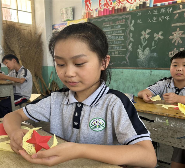 實(shí)踐團(tuán)到訪時(shí)正值暑期,實(shí)踐團(tuán)引導(dǎo)小朋友們一同學(xué)習(xí)和掌握普法教育、避災(zāi)防災(zāi)知識(shí)以及小學(xué)生急救知識(shí),增強(qiáng)小朋友們安全意識(shí),提高應(yīng)對(duì)突發(fā)狀況的能力。在美術(shù)手工課上,團(tuán)隊(duì)成員通過猜謎語的方式引出手工課的主要內(nèi)容:紅星月亮船。紅星月亮船代表著童真,也代表著美好的期盼。組合起來的黃色月亮船和紅色五星,呼應(yīng)著五星紅旗上的星星,通過趣味手工引導(dǎo)學(xué)生愛國愛黨。