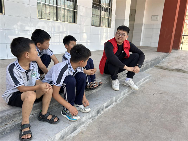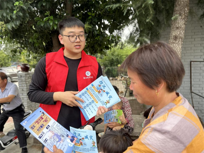 七月雨季頻發(fā),防汛是重點(diǎn)工作,專訪結(jié)束后,實(shí)踐團(tuán)在村民活動(dòng)廣場(chǎng)講解防溺水、防汛知識(shí),向村民分發(fā)自主設(shè)計(jì)的宣傳頁,并參與當(dāng)?shù)匮埠又驹阜⻊?wù)工作。