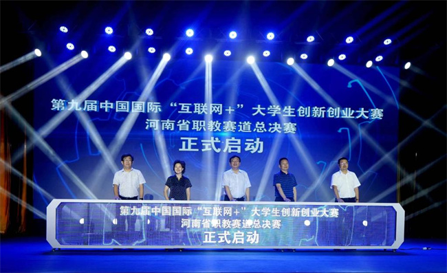 與會領(lǐng)導(dǎo)共同啟動第九屆中國國際“互聯(lián)網(wǎng)+”大學(xué)生創(chuàng)新創(chuàng)業(yè)大賽河南省職教賽道總決賽
