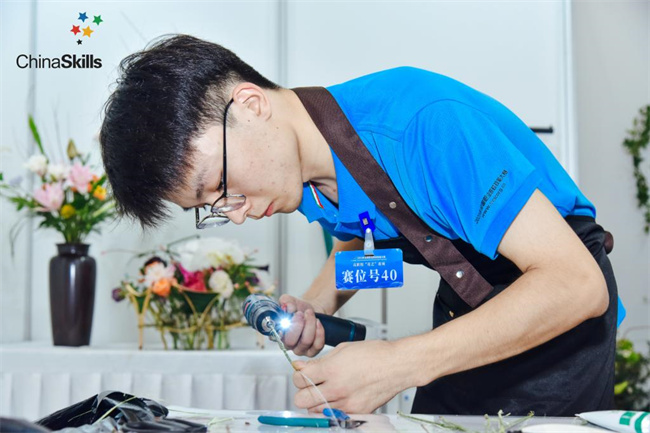 本次花藝賽項(xiàng)總時長六個半小時,內(nèi)容涵蓋中國傳統(tǒng)插花與現(xiàn)代花藝兩個內(nèi)容。劉通同學(xué)憑借扎實(shí)的理論知識、過硬的專業(yè)技能、良好的心理素質(zhì),出色完成了“中國傳統(tǒng)插花——瓶花作品創(chuàng)作”“人體花飾”“餐桌花”3項(xiàng)比賽任務(wù)。參賽作品完美呈現(xiàn)了中國傳統(tǒng)插花與現(xiàn)代花藝的設(shè)計(jì)創(chuàng)意、立體結(jié)構(gòu)、色彩組合、植物搭配等要素的有機(jī)結(jié)合,全面展現(xiàn)了選手對花藝的認(rèn)知能力、審美鑒賞能力和動手制作能力,最終以總分第2名的優(yōu)異成績,榮獲該賽項(xiàng)一等獎,這也是河南省該賽項(xiàng)歷年來取得的最好成績。