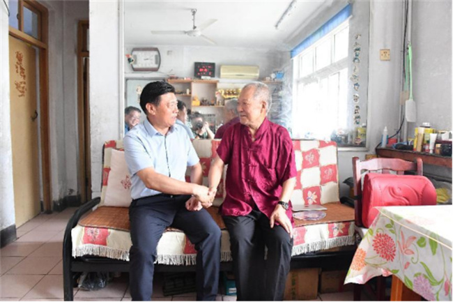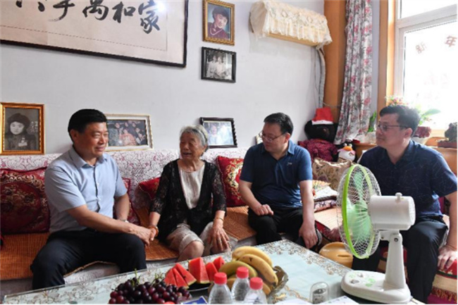 31日上午9時(shí),劉源一行走訪慰問李梅蘭(抗美援朝復(fù)轉(zhuǎn)軍人)、邵戰(zhàn)國(guó)(核基地復(fù)轉(zhuǎn)軍人代表)、祝以廉、張喜明、楊金旺等復(fù)轉(zhuǎn)軍人代表。校領(lǐng)導(dǎo)關(guān)切的詢問他們的生活狀況,并向他們致以節(jié)日的祝福。