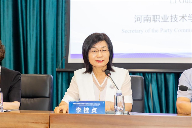 李桂貞在致辭中介紹了學(xué)校的辦學(xué)歷史和特色,重點(diǎn)分享了學(xué)校在國(guó)際合作與交流中的成果。她表示,河南職院將把加強(qiáng)國(guó)際交流合作,作為提升國(guó)際影響力、競(jìng)爭(zhēng)力的重要賽道。不斷加大與職業(yè)教育先進(jìn)國(guó)家和“一帶一路”沿線國(guó)家的合作,扎根中國(guó)、融通世界,立足時(shí)代、面向未來(lái),堅(jiān)持“教隨產(chǎn)出、產(chǎn)教同行”,立足學(xué)校骨干(特色)專業(yè),“走出去”和“引進(jìn)來(lái)”雙線發(fā)展并有所側(cè)重,做強(qiáng)河南職業(yè)教育國(guó)際合作品牌,打造具有河南特色的職業(yè)教育海外辦學(xué)項(xiàng)目、海外職業(yè)技術(shù)學(xué)院,推動(dòng)職業(yè)教育與中國(guó)企業(yè)一道“走出去”,與世界共享河南職業(yè)教育改革成果。
