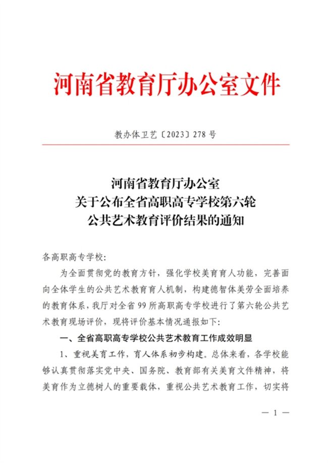 該校歷來(lái)高度重視公共藝術(shù)教育教學(xué)工作,強(qiáng)化公共藝術(shù)課程建設(shè),著力打造課程教學(xué)、實(shí)踐活動(dòng)、校園文化、藝術(shù)展演“四位一體”的美育教育機(jī)制。同時(shí)利用河南省非物質(zhì)文化遺產(chǎn)研究基地和焦作市非物質(zhì)文化傳承基地等兩大科研平臺(tái),讓師生汲取優(yōu)秀傳統(tǒng)文化藝術(shù)精髓,傳承中華美育精神,做到了藝術(shù)教育內(nèi)容豐富,育人成效顯著。