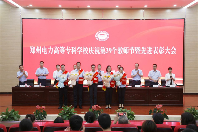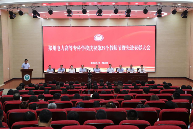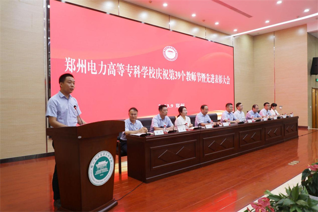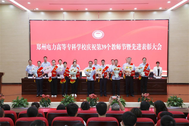 中新河南網(wǎng)9月7日電(阿依古麗·艾力江) 為了充分展現(xiàn)鄭州電力高等專(zhuān)科學(xué)校高質(zhì)量教師隊(duì)伍建設(shè)的突出成就和廣大教師立德樹(shù)人、自信自強(qiáng)的精神風(fēng)貌,大力弘揚(yáng)尊師重教的良好風(fēng)尚。9月5日,鄭州電力高等專(zhuān)科學(xué)校在西階梯教室隆重舉行慶祝第三十九個(gè)教師節(jié)暨先進(jìn)表彰大會(huì)。學(xué)校黨委書(shū)記楊義波、校長(zhǎng)、黨委副書(shū)記楊建華、二級(jí)職員宗萬(wàn)偉、黨委副書(shū)記、副校長(zhǎng)胡斌、紀(jì)委書(shū)記、工會(huì)主席武予然、副校長(zhǎng)黃鵬、三級(jí)職員王林、高級(jí)管理師周明霞、高級(jí)專(zhuān)家張勇,以及全體教職工和部分學(xué)生代表參加了此次表彰大會(huì)。會(huì)議由黨委副書(shū)記、副校長(zhǎng)胡斌主持。